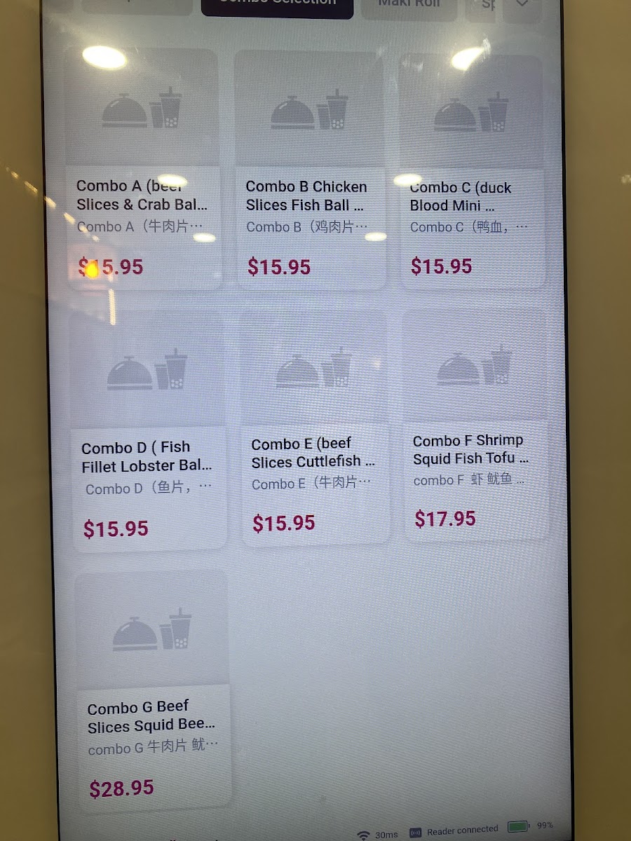 shrimp, squid ,fish tofu, lotus root slices, bok choy, instant noodles 虾 鱿鱼 鱼豆腐 莲藕 上海青 公仔面