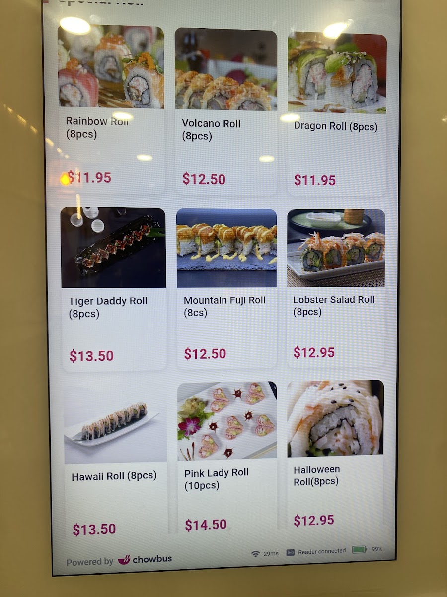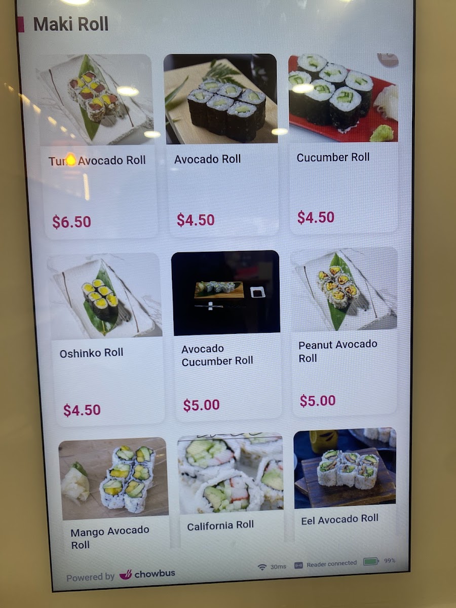 California roll, tuna roll, salmon roll.